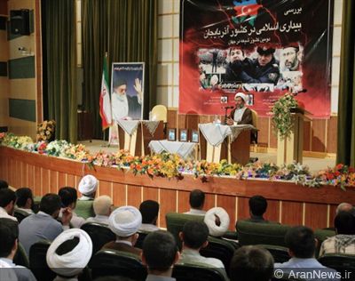 Azərbaycan Respublikasında İslami Oyanış adlı konfransda Qum dini elmlər hövzəsinin tələbələri və ruhaniləri bu ölkə rəsmilərinin imperialist və sionist siyasətlərini tənqid edərək ...
