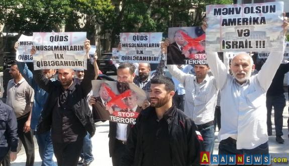 Arannews-Məlumata əsasən, aksiyada iştirak edən inanclılar ABŞ və İsrailin Qüdslə bağlı işğalçı siyasətinə etiraz ediblər. Nümayişçilər "Məhv olsun ABŞ və İsrail", "Qüds müsəlmanların ilk qibləgahıdır", "Qarabağa və Qüdsə azadlıq" və başqa şüarlar səsləndiriblər.   Hüquq-mühafizə orqanları aksiya iştirakçılarından 26 nəfəri saxlayıb. Həbs edilənlər Yasamal rayonu 27-ci polis bölməsinə aparılıblar.