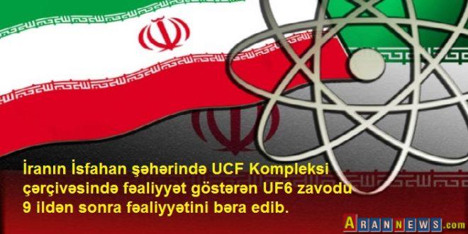 İranın İsfahan şəhərində UCF Kompleksi çərçivəsində fəaliyyət göstərən UF6 zavodu 9 ildən sonra fəaliyyətini bəra edib.