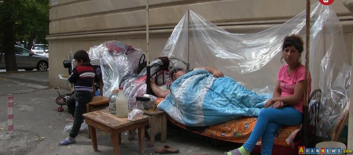 Arannews-Gündəlik ehtiyacları qarşılamaq üçün götürdüyü borclar bir gün onları evsiz qoyub. Borclarını qaytarmaq üçün mənzillərini satmalı olublar."Ürəyim xəstədir, təzyiq xəstəsiyəm, şəkər xəstəsiyəm. Qarnımda 50 kiloqram kista var, xərçəngə çevrilib artıq. Ölümlə üzbəüzəm".Kifayət Hüseynova 14 ildir kirayələrdə qaldığını deyir. Ailə 2004-cü ildən Səbail Rayon İcra Hakimiyyətində ev növbəsindədir."Abit Əliyev dedi ki, mən bu gün Səbail Rayon icra başçısı seçildim. Sənə nə ev verəcəm, nə torpaq. Cəhənnəm ol, "veş"lərini hara tökürsən, tök. İlhama demirsən, Mehribana demirsən, get kimə deyirsən de. Buranın yiyəsi İlham, Mehriban deyil, mənəm".