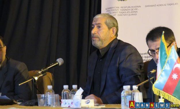 Bizim dərdimiz ədalət dərdidir. Çünki insanlar ədaləti güc, ədalətlini isə güclü bilmirlər. Əksinə, müasir dövrdə zor və gücü ədalət, güclünü ədalətli kimi tanıyırlar. Ona görə də ədalət olan tərəfə deyil, güc olan səmtə gedirlər.Bu günləri Amerika cinayətkar bir sistem yaratmışdır və dünyanı öz ardınca çəkir. Bu gün Amerika ədalətli yox, güclüdür, zülmkardır. Onunla əməkdaşlıq etmək istəyənlər də dünya və axirətdə ziyandadırlar.Biz bu günləri çox sözü asanlıqla danışa bilmirik, bəzi məsələləri mülahizə edirik ki, məsələn filan sözü desək, təhlükə yaxud çəkişmə yarana bilər. Amma mən deyirəm. Biz bir məktəb tanıyırıq ki, o məktəbin rəhbəri maddi dünyaya üç dəfə təlaq vermişdi və o məktəbdə ədalət siyasətə qurban edilməyib. O məktəbdə ədalətin yaşaması üçün həzrət İmam Hüseyn (ə) qiyam etmişdir və bu günləri dünya onun eşq qiyamına heyrandır. Biz də torpaqlarımızı həmin eşqlə azad edəcəyik. Təkcə öz torpaqlarımızı deyil, dünyanın hər yerində işğala, zülmə və hörmətsizliyə məruz qalmış, İslam ümmətinin izzət, şərəf və namusu tapladalnmış bütün İslam ərazilərini İslam bayrağı, Ya Hüseyn, Ya Zəhra, Ya Əbəlfəz şüarları ilə azad edəcəyik. Bu mübarizədə əzmlə hərəkət etməsək, onda bu torpaq üzərində gəzmək bizə haram olacaq.Mən sizə təşəkkür edirəm. Doğrusu, Təbriz ilklər şəhəridir. Bu şəhər bizi öz qardaşı kimi qarşılayan ilklərdəndir. Bu şəhərin müəllimlərinə və bu konfransın zəhmətin çəkib onu təşkil edənlərin hər birinə minnətdarlıq edirəm.Mən bu çətinlik və problemlərin uzun sürəcəyinə inanmıram. İran xalqı könüllü qüvvələri ilə öz düşmənlərinə qalib gəldi. Biz də öz daxili qüvvələrimizə arxalandığımız vaxta qədər Azərbaycan Respublikasının bir qarış torpağını belə əldən vermədik. Bizim müsibətimiz Qarabağ məsələsində müharibə əvəzinə düzgün olmayan münaqişə sözündən istifadə etdiyimiz və beynəlxalq məsələlər formasına saldığımız vaxtdan başladı. İndi bu vəziyyətdən necə çıxmaq barədə düşünməliyik. Coğrafi sərhədlərin dövlətlər arasında mənası olsa da, insanlar arasında sərhədlər humanitar münasibətlər üçün məhdudedici sayılmır. Qardaşın biri Arazin o tayında, biri bu tayında; Qarabağdan Fələstin, Bəhreyn, Yəmən, Suriya və İraqa qədər söhbət qeyrət, şərəf, namus və İslam məsələlərindən düşdükdə sərhədlər öz mənasını itirir. Həqiqətdə, məsələ İslam məsələsidir. Allah bu məsələdə bizə tövfiq versin, bizi xəcalətli etməsin və biz gələcək nəsillər üçün ağır yük qoyub getməyək. Allah bu yolda şəhid olmağı bizə nəsib etsin və bu qələbələri Təbrizdə, bir-birimizi qucaqlamaqla bayram edək, bu bayramı təqvimdə qeyd edək. Bu arzu ilə sizi Allaha tapşırıram. Allah sizə yar olsun və bir daha təşəkkür edirəm.