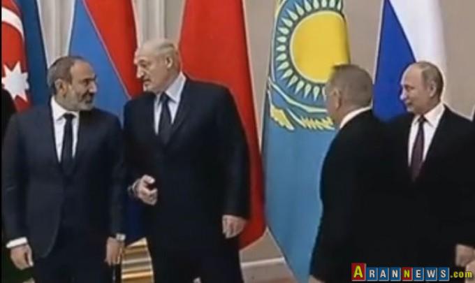 Ənənəvi şəkil çəkmə mərasimində kuryoz bir hadisə yaşanıb: Aleksandr Lukaşenko yanında dayanan Nikol Paşinyana dirsəyi ilə vuraraq, ciddi şəkildə ona nələrisə deyir.Xatırladaq ki, KTMT-nin yeni baş katibinin təyinatı ilə bağlı Yerevanla Minsk arasında gərgin polemika yaranıb.Belə ki, Ermənistanda yaşanan 1 mart hadisələri ilə əlaqədar açılan cinayət işinə görə, Yuriy Xaçaturov ölkəsinə geri çağırılıb.Ermənistanın baş nazir v.i.e. Nikol Paşinyan hələ noyabr ayında Belarus və Qazaxıstan prezidentlərindən baş katib haqqında verdikləri bəyanatlarla bağlı izahat istəyəcəyini bildirmişdi. Ancaq əvvəl Rusiya KİV-də deyildiyi kimi, Nikol Paşinyan Peterburqa gəlişindən sonra sözünün üstündə durmayıb. O yalnız Yerevanda at oynatmağı bacarır. Avrasiya İqtisadi şurasının ali iclasında da erməni baş nazirin “ağzına su alaraq” sakit əyləşdiyini görmək olub.